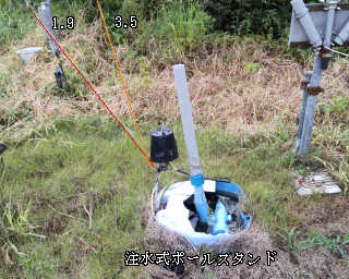 注水式ポールスタンドを利用して1.9/3.5MHzの1/4λワイヤー2本を